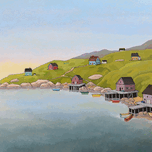 A Nova Scotia Fishing Village at Dawn just before the busy activities of the day are about to begin. The multi-coloured dory boats sit on the water, ...[+]