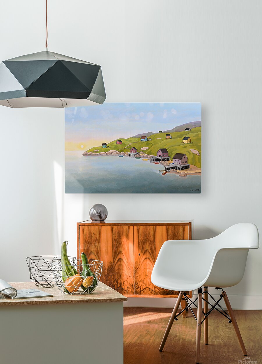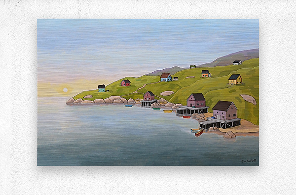 A Nova Scotia Fishing Village at Dawn just before the busy activities of the day are about to begin. The multi-coloured dory boats sit on the water, ready for the day's fishing and all is calm. It's a special moment in the day of the village that thrives on capturing the bounty of the ocean.