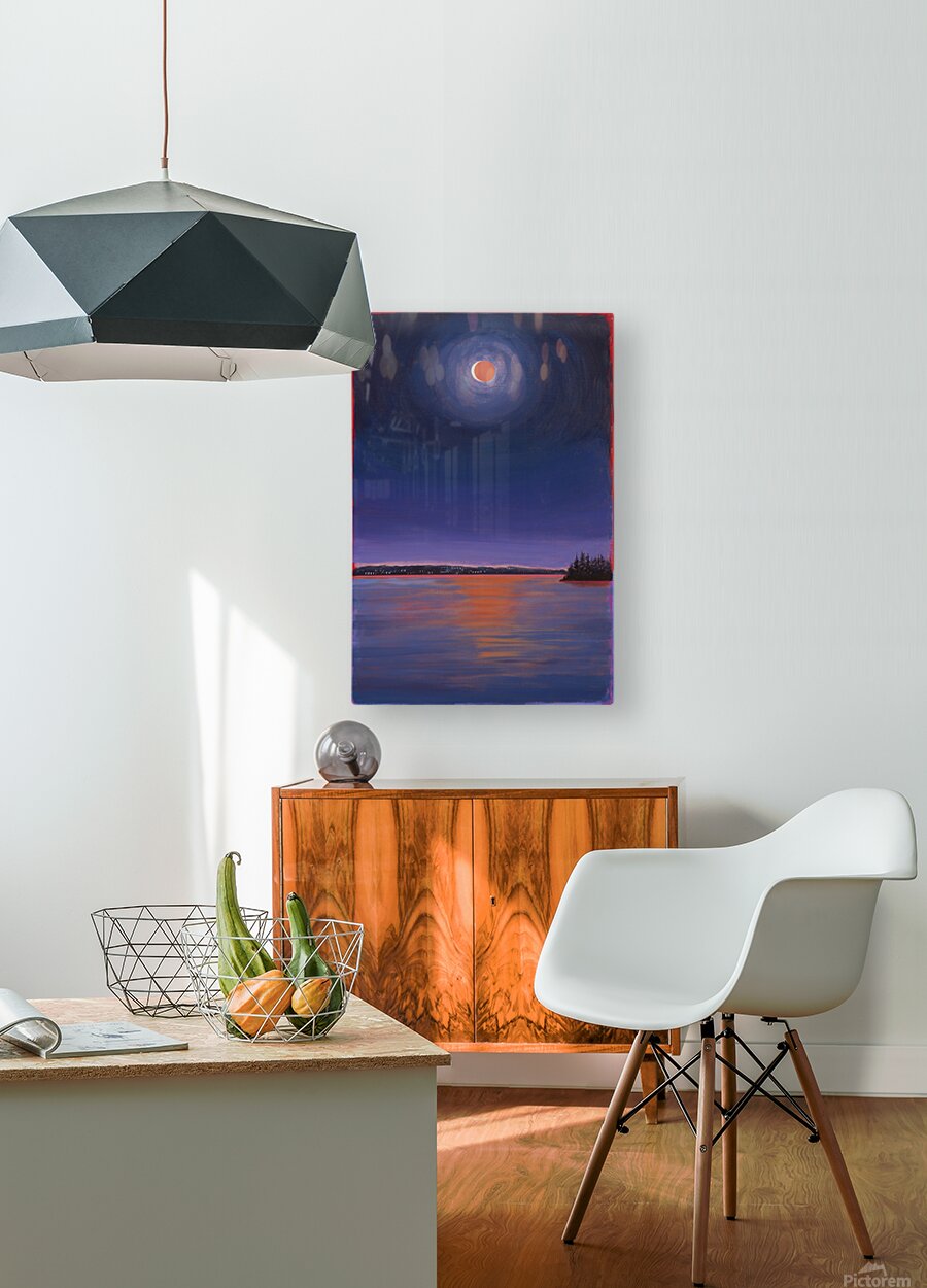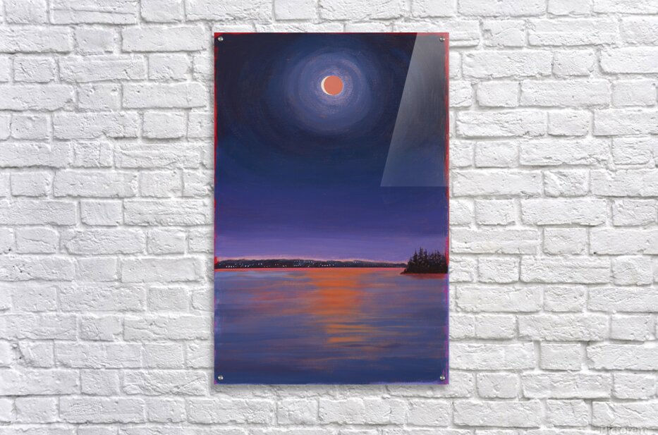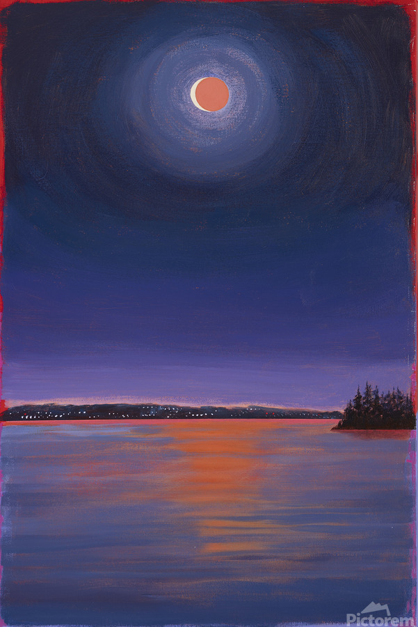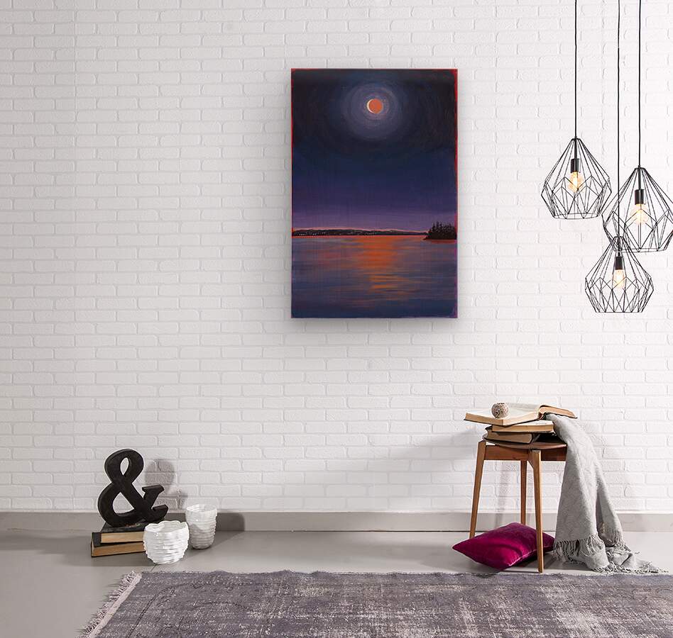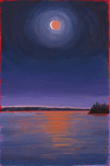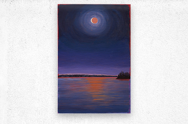 I was amazed at the beauty and wonder of the rare celestial event of a total lunar eclipse. It reminded me how we are a small part of a universe of possibilities. This painting is an homage to the sun, moon and ocean and how they touch my creative spirit.