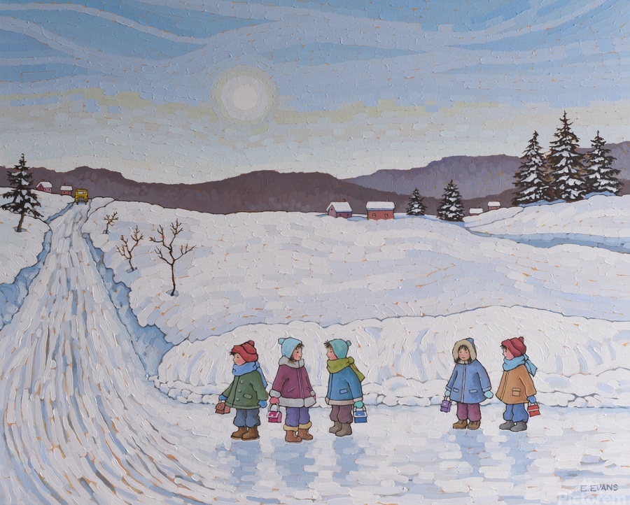Artist Comments: ...Waiting for the bus on a snowy day allowed me to talk with my friends and find out what was happening in their lives. I have many fond memories of those days and conveniently forget the frozen fingers and toes.