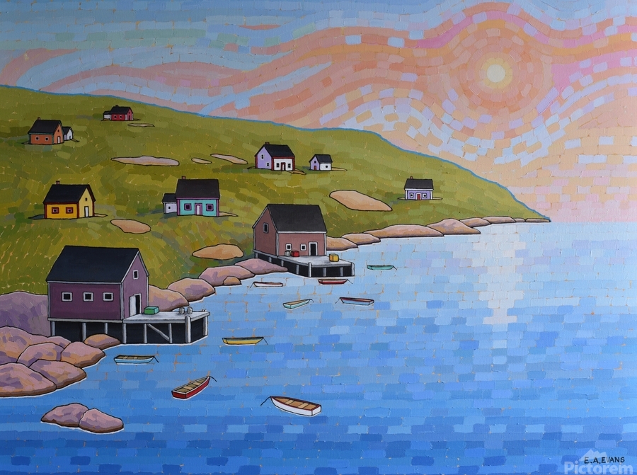Artist Comments:...The quiet simplicity of a small maritime village inspired me to capture its colour and shape. The stillness creates a serene and soulful image.
