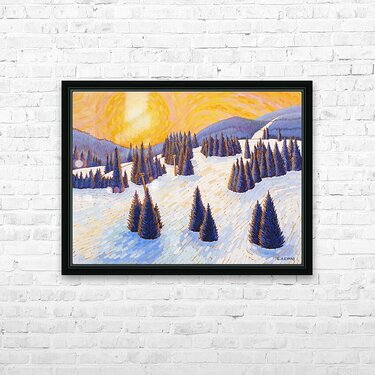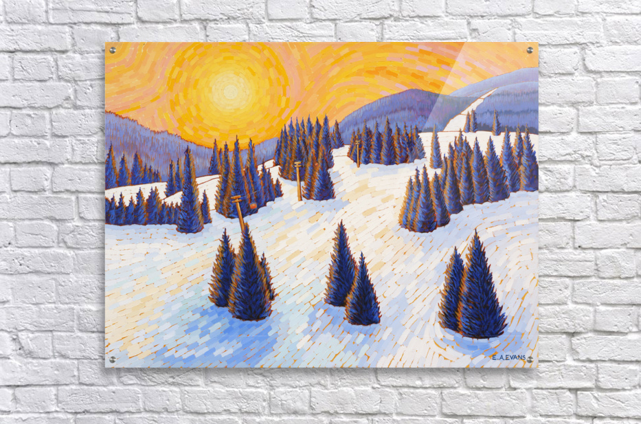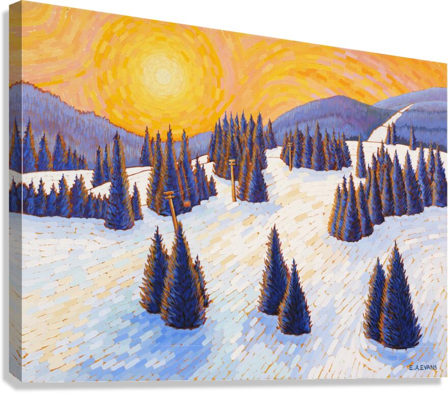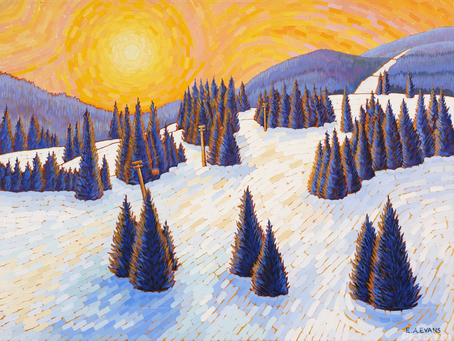 Artist Comments:...This is the famed ski hill at Whistler, BC. It can be very steep or nice and gentle depending on your skill and courage. At days end the hill is empty with snow glistening under the setting sun. It’s a magical special moment.