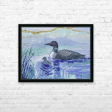 Artist Comments:...Reflections of a Loon and her baby gave me some early concepts of how to begin my journey into Brickilism. I was excited to see these two on a calm and peaceful day on the lake.