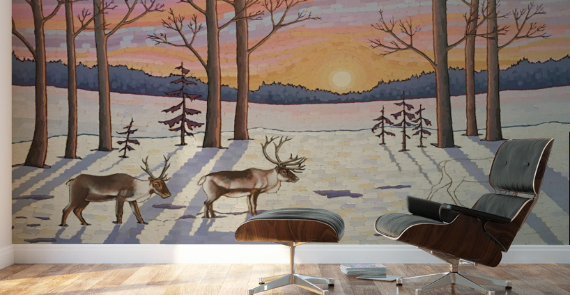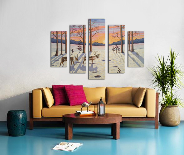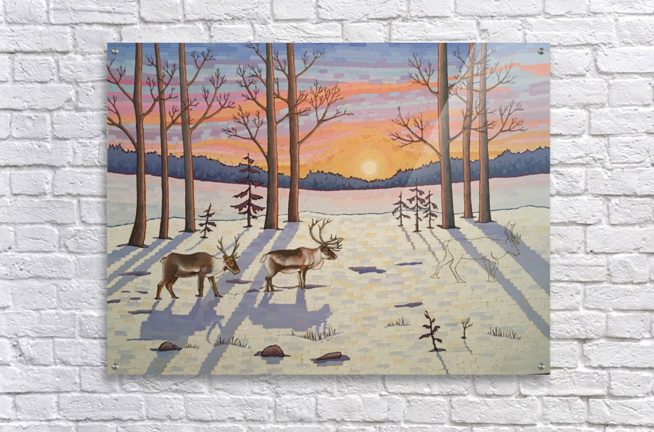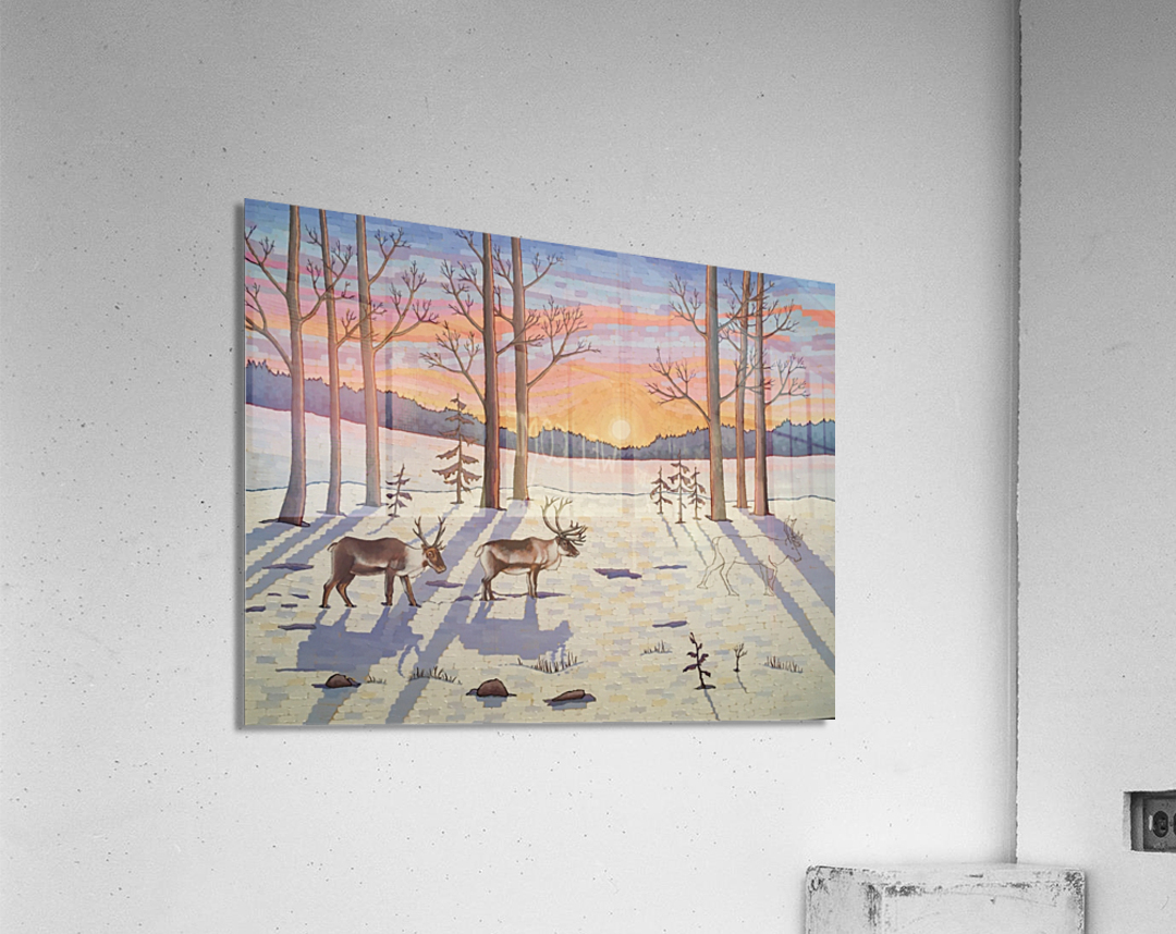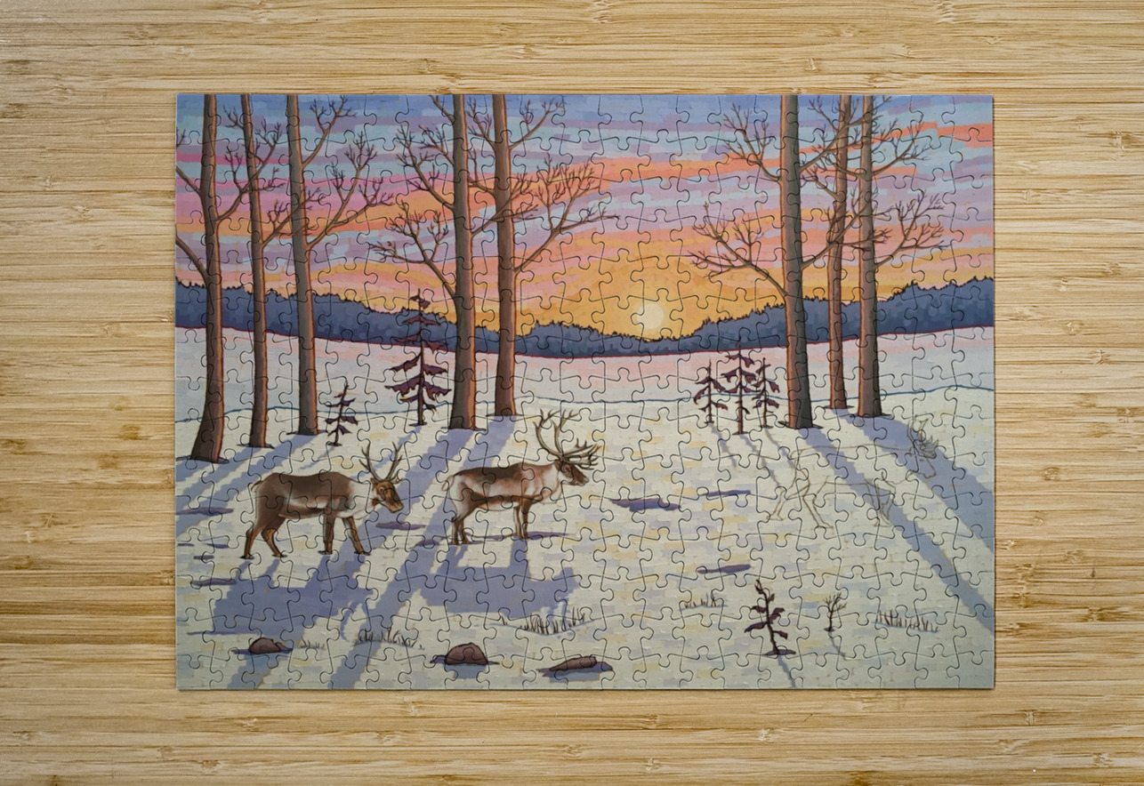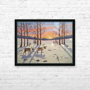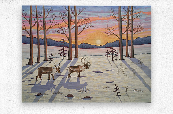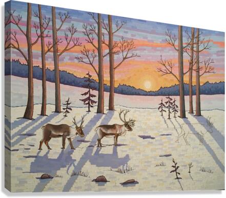 Artists Comments: ...Moving through a stand of trees the caribou make their way in the snow on the lookout for food. These majestic creatures are in d...[+]
