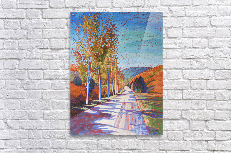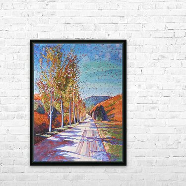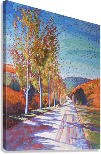 Artist Comments:...The Golden Mile vineyards near Oliver BC are one of my favourite trips. This beautifully tree lined road casts some warm shadows during Autumn and creates a wonderfully spiritual setting.