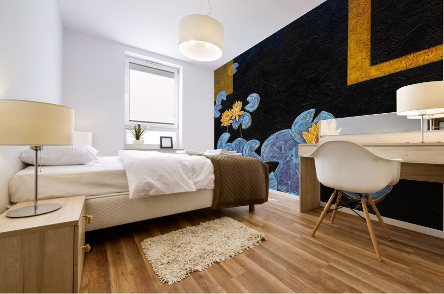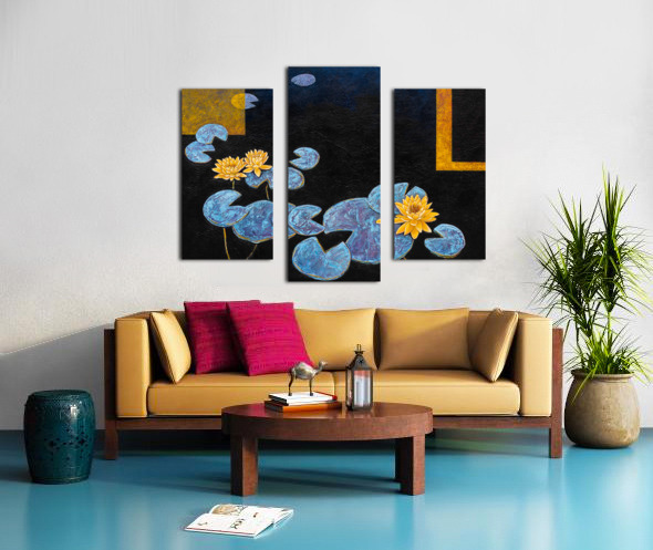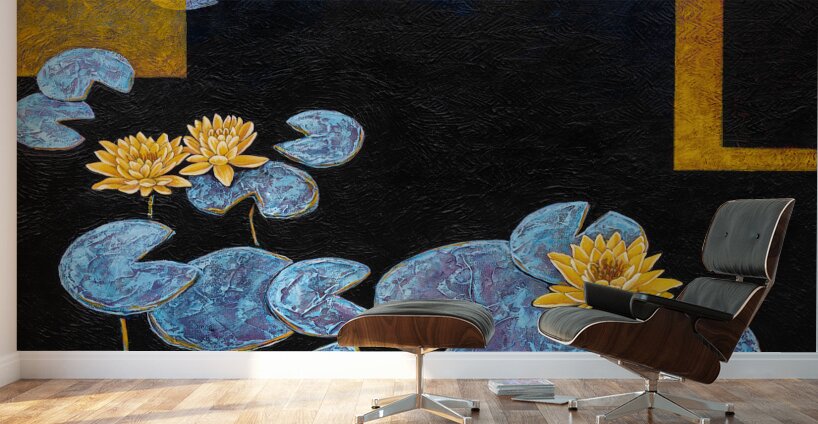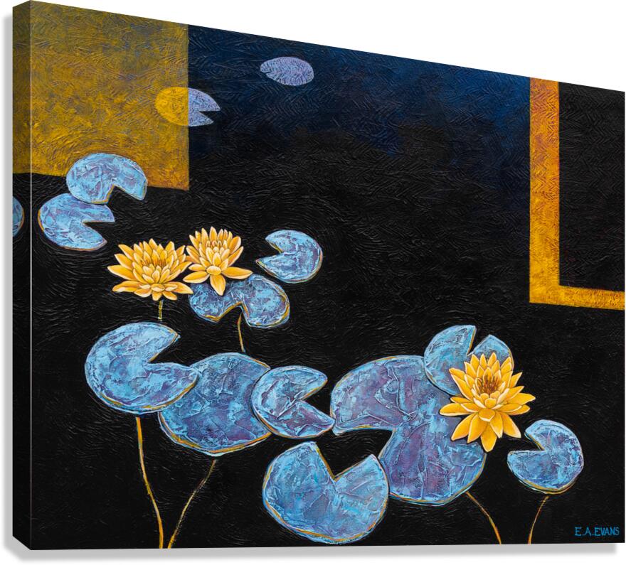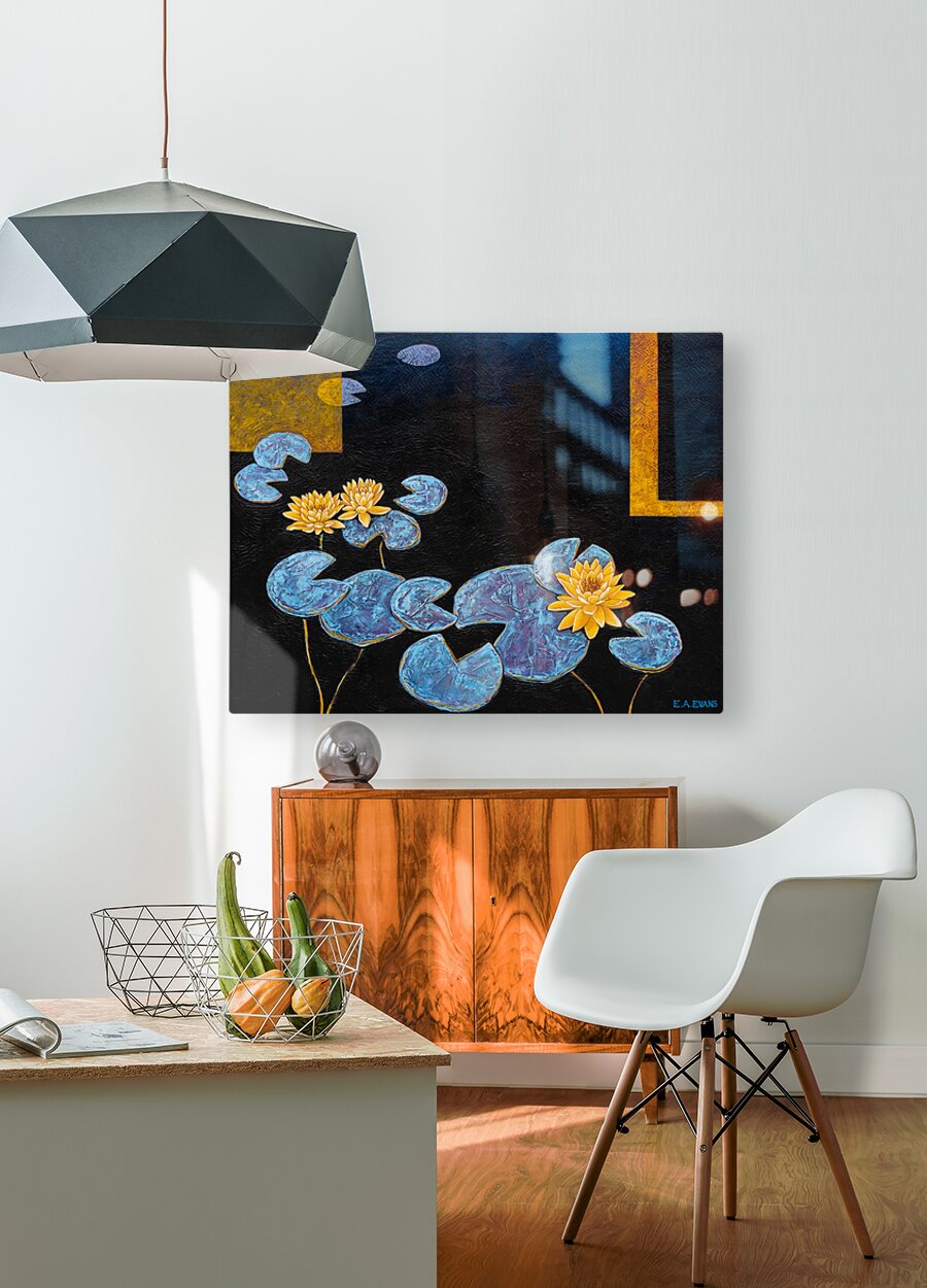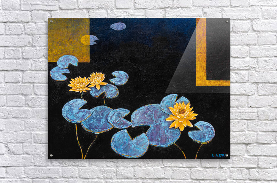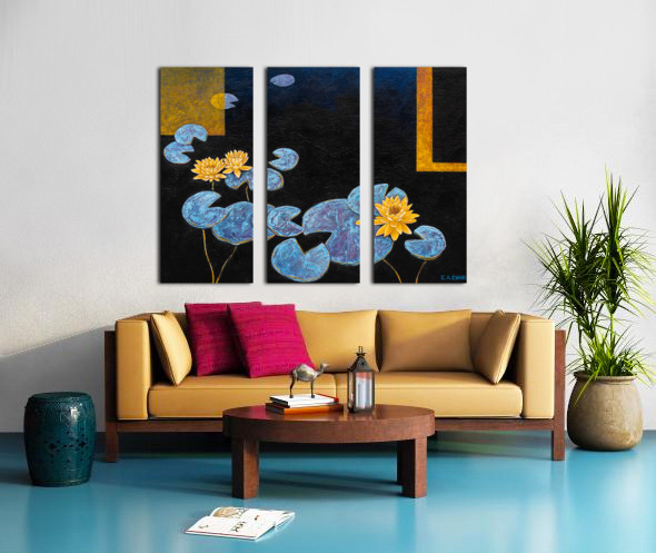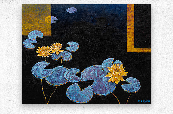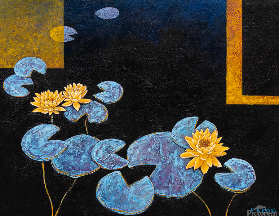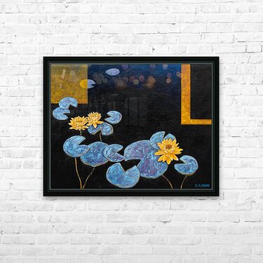 ABOUT THIS ARTWORK: BLUE LILYPADS YELLOW FLOWERS