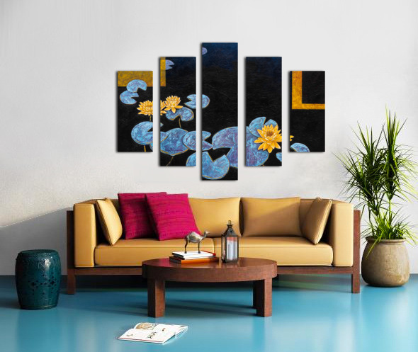 Get this artwork "Blue Lilypads Yellow flowers " in a framed print.